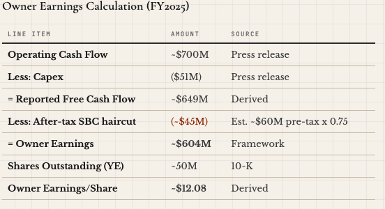 6.6x owner earnings for a business generating 58% gross margins with a 20-year track record of brand durability. The market is wrong.