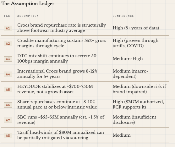 Moat Width: Medium-Wide. The Crocs brand, evaluated independently, has a durable competitive position. HEYDUDE has no moat. This distinction matters enormously for valuation, as I will discuss it later.